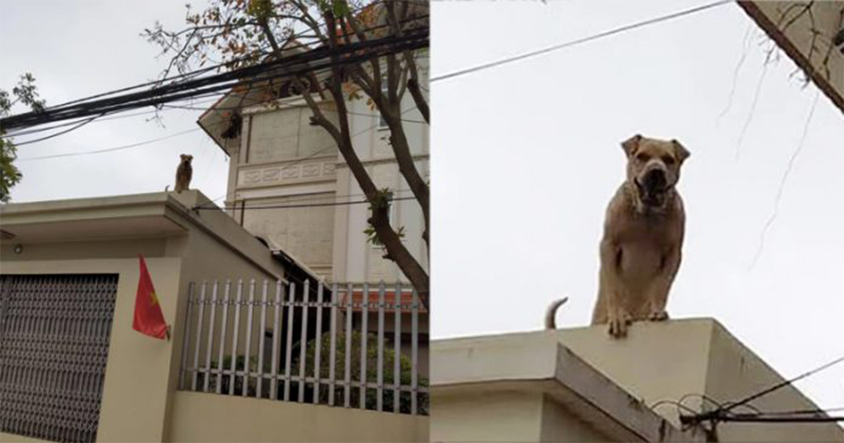 Đáng nói hơn, chú chó không chỉ mừng rỡ một cách thông thường mà thể hiện sự phấn khích đặc biệt. Chó ta leo hẳn lên nóc nhà để được nhìn thấy cô gái rõ hơn khiến không chỉ người trong cuộc bất ngờ, buồn cười mà cả cộng đồng mạng cũng vui theo vì độ hồn nhiên, đáng yêu của chú chó.