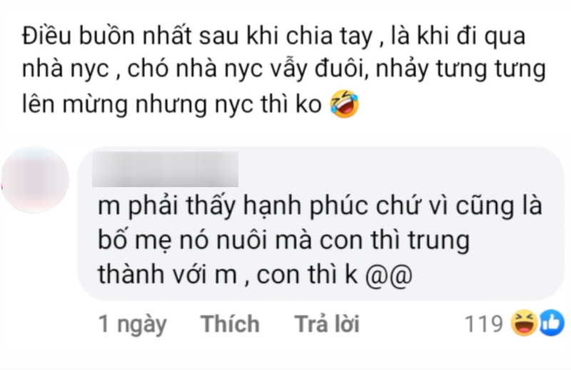 – Ca này khó thật, nhìn chó thấy thương với tội ghê, chắc nó cũng muốn ra gặp để chơi với cô gái. Đúng là yêu xong chia tay khổ thế không biết. Người vương vấn đã đành còn gặp thêm chú chó đáng yêu như này.