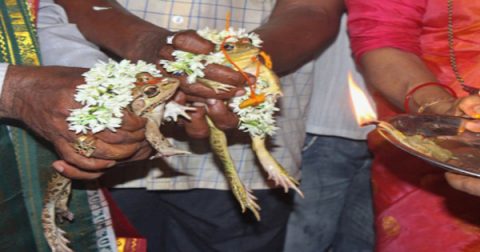 Ngày 19/7/2019, người dân Bhopa (Ấn Độ), đã phải tổ chức hôn lễ cho một cặp ếch (theo tín ngưỡng… Chi tiết Cả làng góp tiền tổ chức đám cưới cho cặp đôi ếch để cầu mưa, hai tháng sau phải ly dị gấp vì lũ cuốn trôi 9.000 ngôi nhà