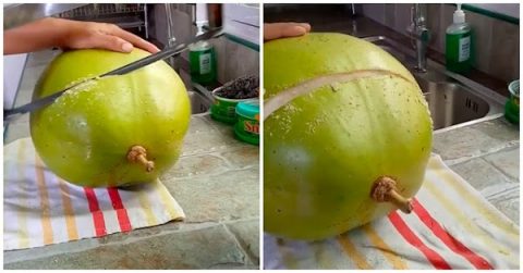 Các mẹ đã bao giờ nhìn thấy loại quả to giống bưởi nhưng phần vỏ lại xanh và nhẵn như… Chi tiết Xôn xao loại quả to như bưởi nhưng vỏ cứng, nhẵn giống dừa, ruột từ trắng chuyển đen