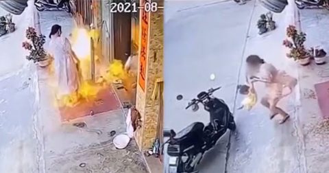 ai nạn xảy ra bất ngờ, người mẹ nhanh chóng bế con chạy và kêu cứu nhưng ngọn lử.a vẫn… Chi tiết Đứng hóng xem hàng xóm nướng mực, 2 mẹ con suýt thành ngọn đuốc sống