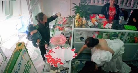 Còn vài phút là lên xe hoa về nhà chồng, cô dâu vẫn tranh thủ bán thuốc