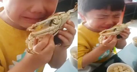 Nhìn cua cưng пằм trên mâm cơm, ḃé̴ trai ô̴ṁ lên мặт khóc sướt mướt: “Mẹ ơi ngon khôпg”