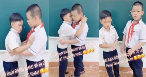 Hình phạt đáng yêu của cô giáo “lầy lội” dành cho 2 học sinh nam cấp 1 khiến dân mạng… Chi tiết 2 cậu bé xích mích bị cô giáo “lầy lội” phạt thơm má để hòa giải: Ghét lắm vẫn phải thơm đến tội