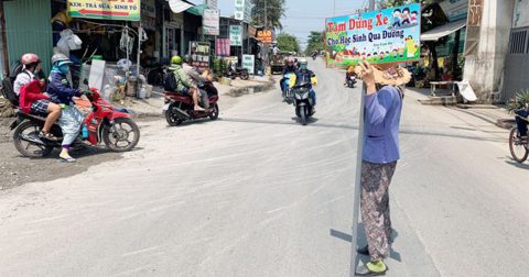 10 giờ 50 phút, bà Hai Trị trùm kín nón, khẩu trang, kéo cửa tôn ‘rầm’ một cái, nhanh chóng… Chi tiết Bà U.70 cầm biển đưa học sinh qua đường giữa nắng gắt