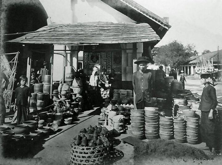 Một cửa hàng bán đồ gốm và sành bên hông chợ của một người Tàu