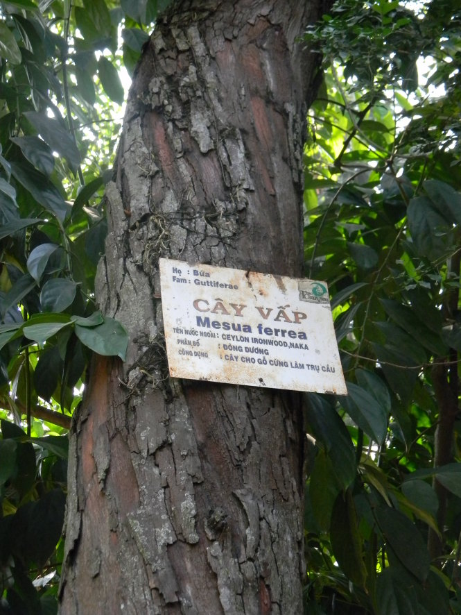Cây thứ hai không cao lắm, gốc cổ thụ, khá già nua, phải cần ba cây sắt phụ chống đỡ “tấm thân già”, số hiệu 1190, bảng tên là vấp nhiều hoa (Mesua Floribunda).