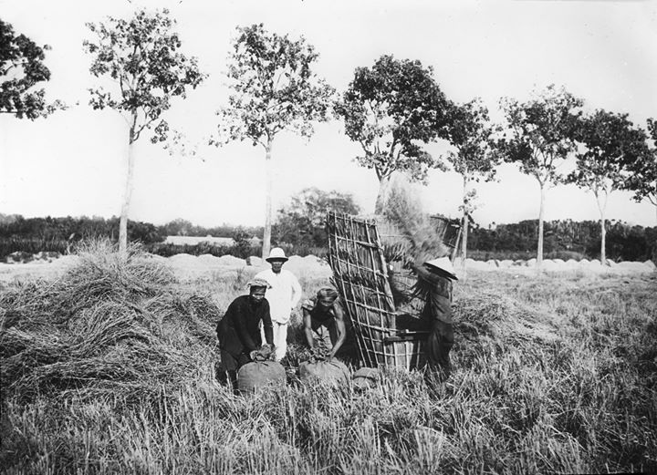 Cấy lúa trên một phần đất xã Tân Sơn Nhứt xưa cách đây hơn 100 năm trước, tại khu vực những người đang đứng ngày nay chính là phi trường Tân Sơn Nhứt mà người Pháp lấy đất để xây dựng.
