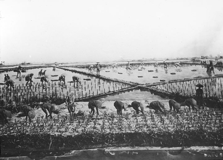 Những người Pháp và người Việt đang cấy lúa trên một phần đất xã Tân Sơn Nhứt xưa cách đây hơn 100 năm trước, tại khu vực những người đang đứng ngày nay chính là phi trường Tân Sơn Nhứt mà người Pháp lấy đất để xây dựng.