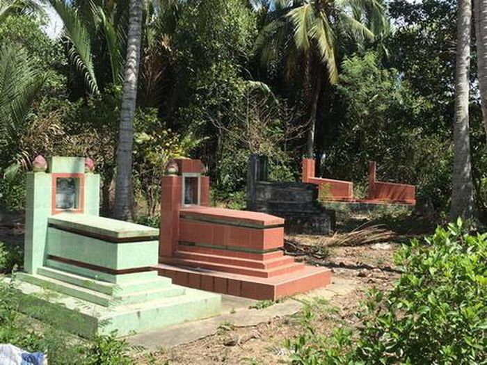 Phần mộ của Bạch công tử (thứ hai từ ngoài vào) trước đây chỉ là một đám đất tan hoang, sau đã được xây xi măng lại. Ảnh: Vietnamnet
