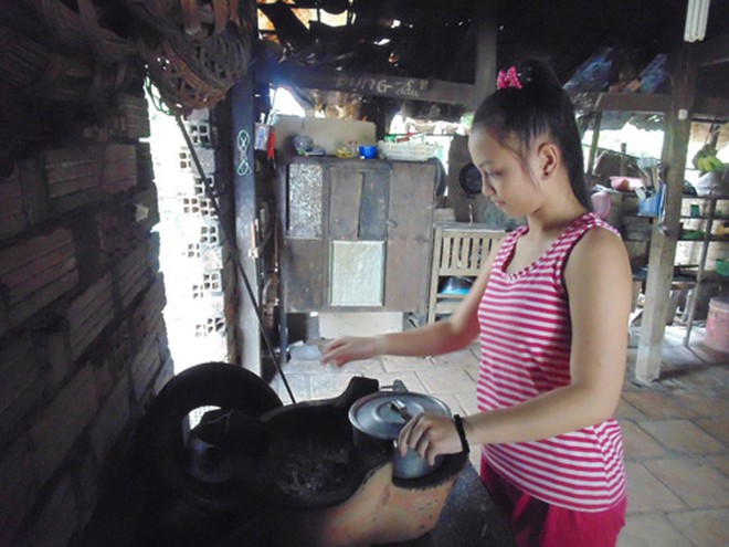 Đón chúng tôi, một cô bé vóc dáng cao ráo, khá xinh xắn bước ra mở cửa. Đó chính là Hồ Thúy Vy. Thúy Vy cho biết em vừa học hết lớp 9 ở Trường THCS An Bình, H.Long Hồ, tỉnh Vĩnh Long.