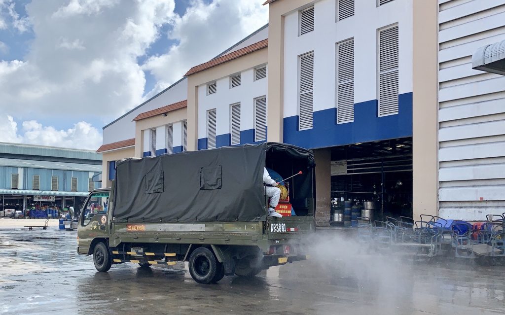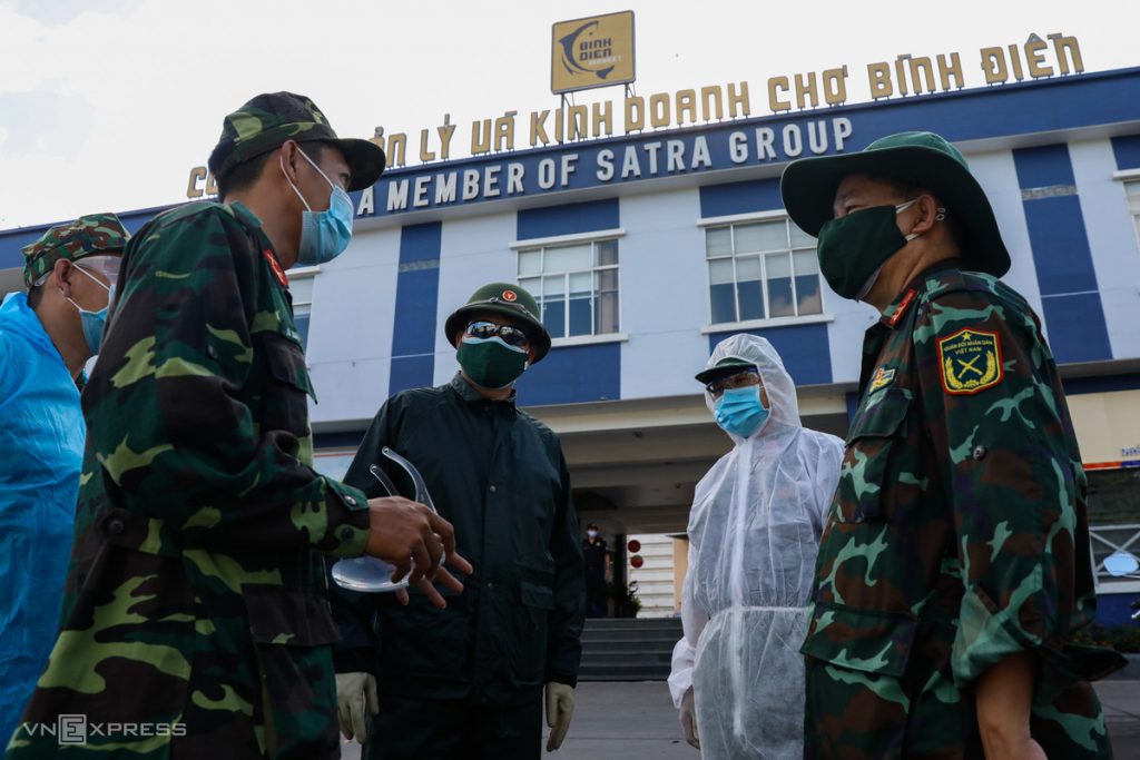 Chợ Vườn Chuối, quận 3: Ngày 30/6, 4 trường hợp dương tính đầu tiên được phát hiện qua tầm soát bệnh nhân tại Bệnh viện quận 3 (2 ca), Phòng khám Đa khoa Nhân Hậu (1 ca) và một trường hợp trong cộng đồng. Sau khi phong tỏa diện rộng khu vực chợ Vườn Chuối và tiến hành lấy mẫu, ngành y tế phát hiện 129 bệnh nhân mới là những người sinh sống, bán hàng.