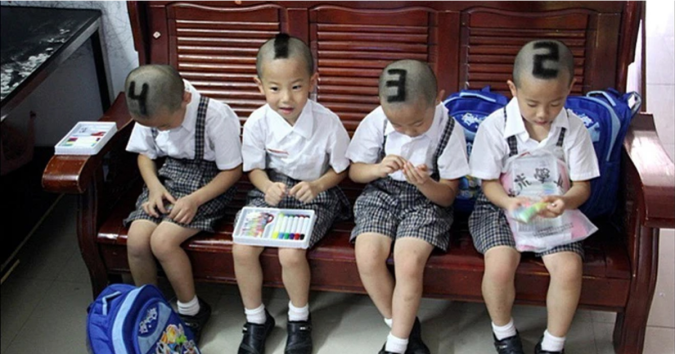 Vì thế, để giải quyết ca hóc búa này, chị Đàm Siêu Vân buộc phải “đánh dấu” từng bé một theo kiểu vô cùng mới lạ là số thứ tự bằng kiểu tóc trên đầu.