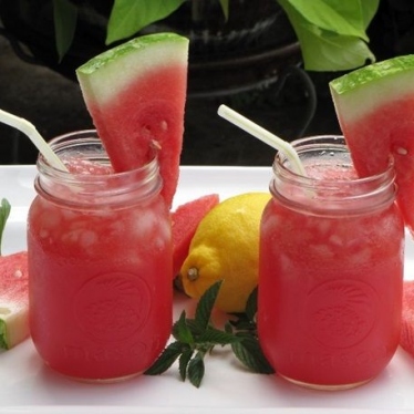 Vài lát dưa hấu hoặc dưa chuột, một ít nước cốt chanh, vài lá bạc hà, nước khoáng cho vào cối xay nhuyễn.
