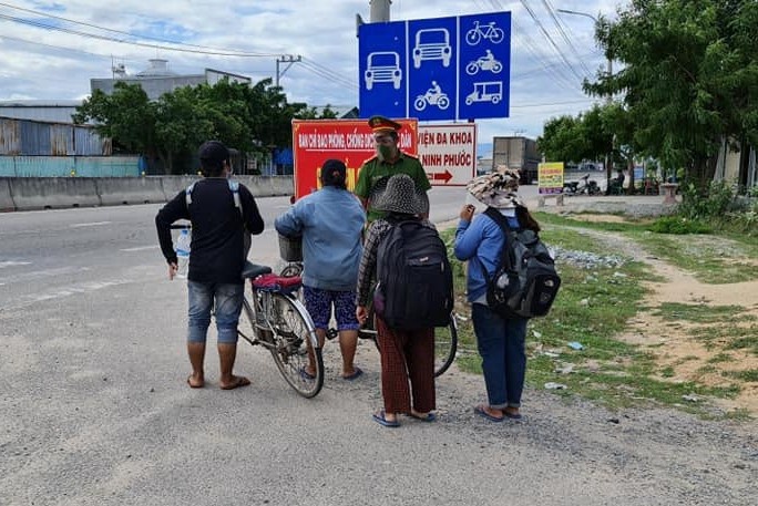 Bốn mẹ con người Nghệ An đạp xe dọc QL1 trên 2 chiếc xe đạp từ H.Trảng Bom (Đồng Nai) để về Nghệ An đi qua nhiều trạm kiểm soát phòng chống dịch Covid-19. Khi đến thị trấn Phước Dân, H.Ninh Phước (Ninh Thuận), lực lượng tại chốt kiểm soát Chung Mỹ (thị trấn Phước Dân) kiểm tra và biết được hoàn cảnh khó khăn của 4 mẹ con nên mời vào trạm.