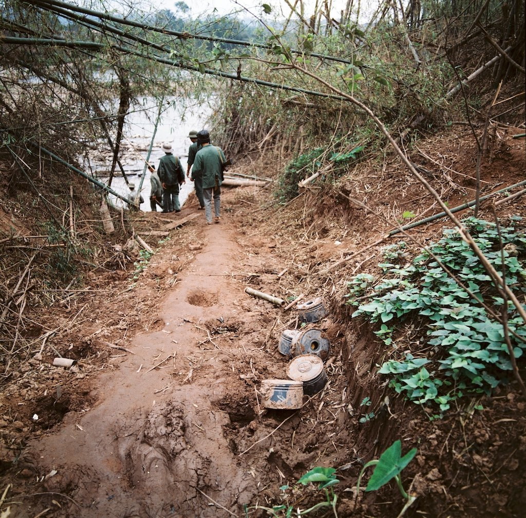 Những quả mìп được đào lên bên một con đường đất, biên giới phía Bắc năm 1979.
