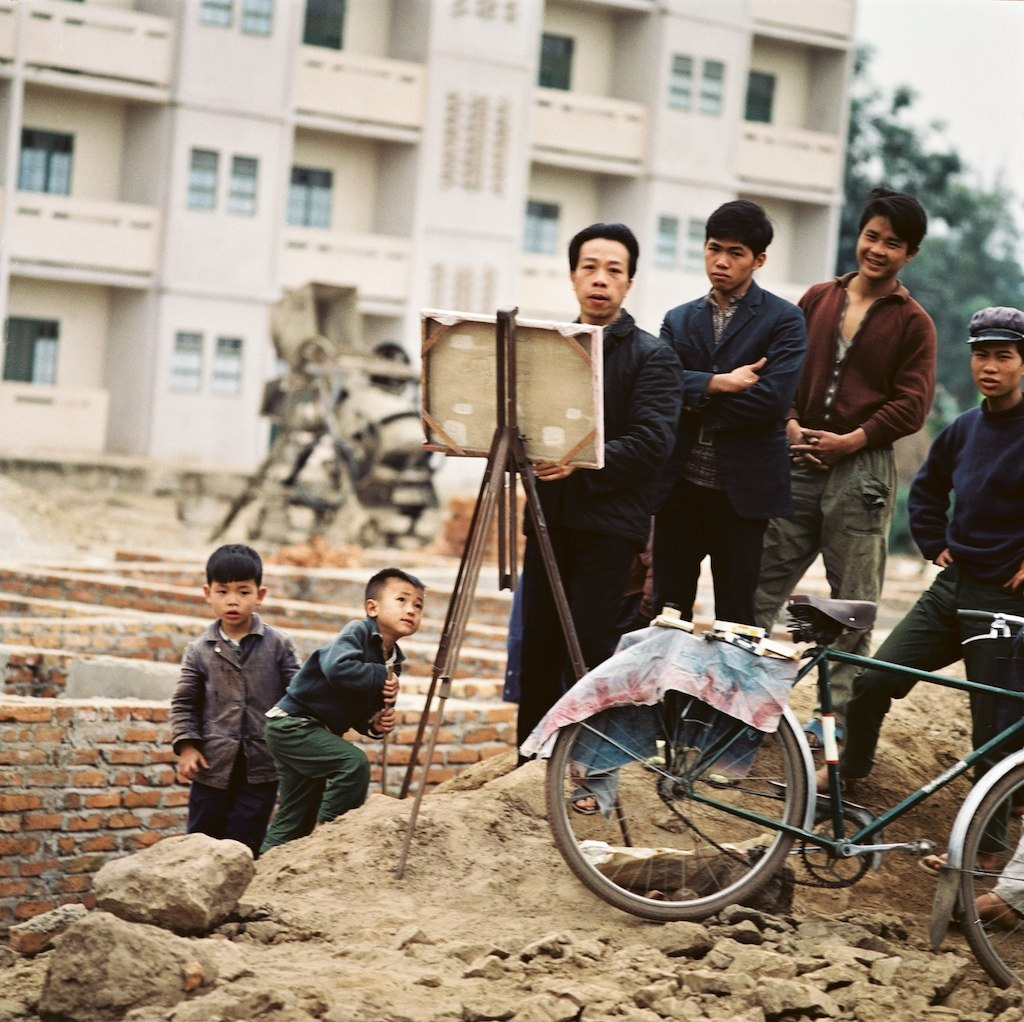 Một họa sĩ sáng tác trên công trườɴg xây dựng.