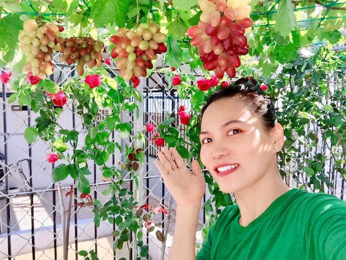 Những ngày giãn cách xã hội này, nhiều gia đình ngược xuôi tìm mua rau củ để bổ sung chất xơ thì chị Ánh chỉ cần lên sân thượng hái rau, thu hoạch nho, dưa trong vườn nhà có sẵn.