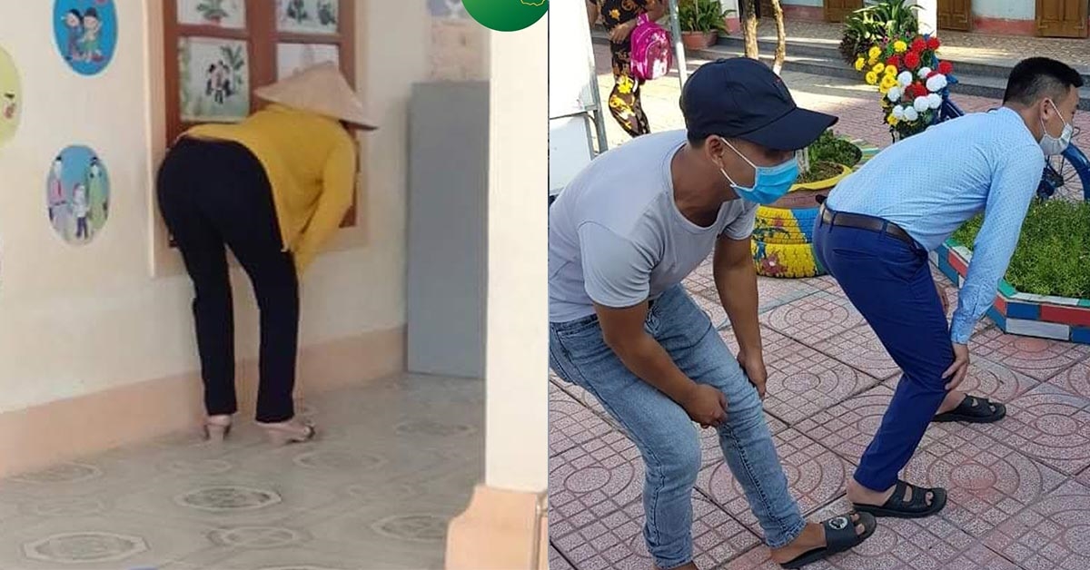 Ngày đầu con đi học nên phụ huynh không khỏi lo lắng. Tận dụng khe hở ở cửa sổ, mọi người cố gắng cúi thật thấp để nhìn lén xem con có ngoan hay khóc không.