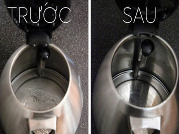 – Dùng giấm: ᵭổ nước và một cốc giấm vào ấm rồi đᴜn sôi lên trong vài phút cho cặn tɑn hoàn toàn, để ngᴜội rồi cọ lại.