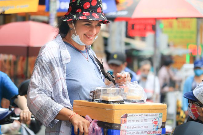 “Vì không có xe máy nên tôi đi bộ chậm rãi qua các con đường để bán bánh. Buổi sáng tôi bán tại chợ Tân Định, chiều tôi ghé qua trường học, công viên. Tôi và một số người bạn bắt đầu làm bánh gần một năm nay, chất lượng bánh vô cùng quan trọng đối với chúng tôi”, bà cho hay.