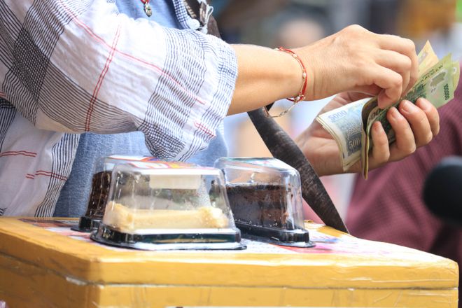 Tình cờ đi chợ Tân Định, chúng tôi bắt gặp hình ảnh một người phụ nữ nước ngoài đi bộ, đội nón bo, mặc quần áo lịch sự mang một thùng xốp phía trước với nhiều loại bánh ngọt. Người này nở nụ cười thật tươi, đi chào hàng khắp nơi trong chợ, người bán và người mua rất ít giao tiếp mà dùng ngôn ngữ hình thể để nói chuyện với nhau. Hỏi những người xung quanh thì mới biết người phụ nữ này đã bán bánh ở đây nhiều tháng nay, ai cũng quen.