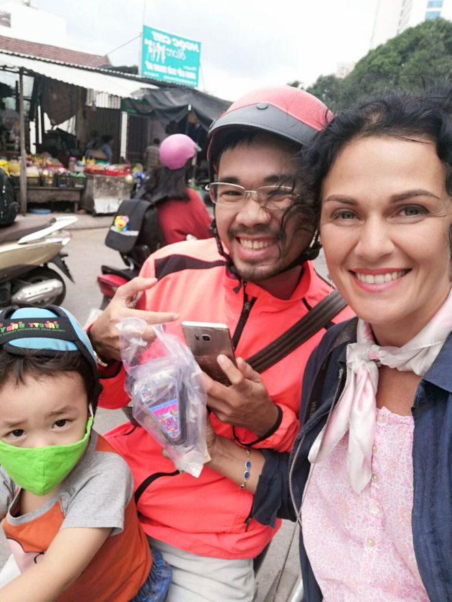 Bà khoe với chúng tôi những kiến thức lịch sử mà mình tìm hiểu được, chẳng hạn việc Việt Nam vừa kết thúc cuộc chiến tranh vệ quốc không lâu và đang trên đà phát triển nhanh về phía trước. “Tôi đã đi xe máy đến nhiều nơi của Việt Nam như Mũi Cà Mau, Đà Lạt, tôi cũng từng đến Hà Nội, Hạ Long để rồi yêu tất cả mọi thứ, từ khí hậu, con người, thực phẩm, thiên nhiên, biển đảo và không khí”, bà cười.