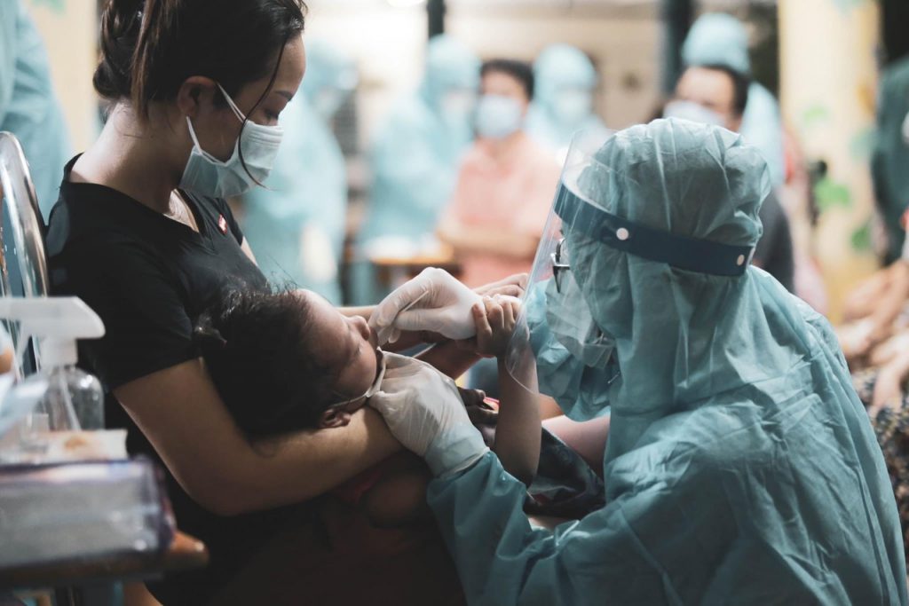 Nếu trong nhà có trẻ em bị nhiễm Covid-19 thì chúng ta cần làm gì (ảnh minh hoạ trong một lần lấy mẫu xét nghiệm cho trẻ)