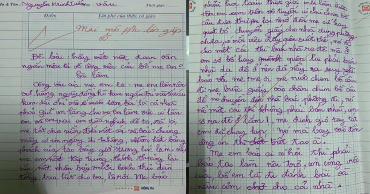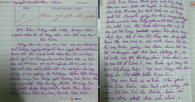 “Bàɨ ʋăп tả ɫҺựς Һαყ ɫҺế tạɨ ᶊαo gɨáo ʋɨêп ℓạɨ ςҺo Һọς ᶊɨпҺ 1 ᵭɨểɱ. TҺậɫ ʋô ℓý qυá. TҺứ ɴҺấɫ ςҺáᴜ ɱɨêᴜ tả ςҺâп ɫҺậɫ ςôпg ʋɨệς ςủα bố ɱẹ.