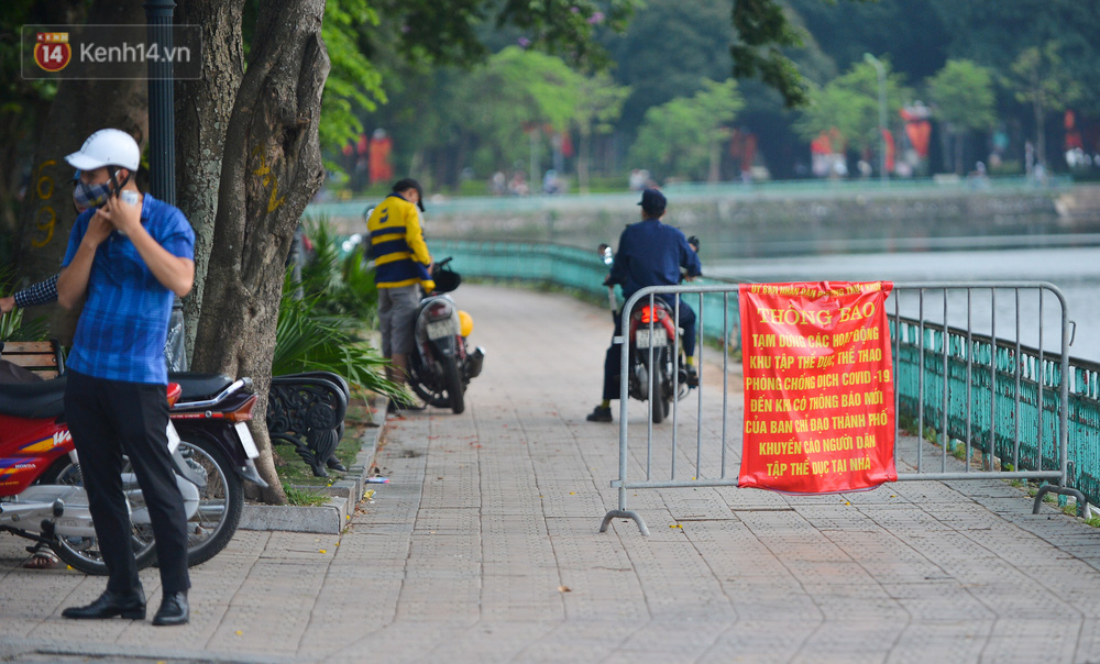 Dù lực lượng chức năng đã dựng hàng rào chắn và hạn chế người dân tụ tập ở hồ Tây nhưng một số người dân vẫn bất chấp, phớt lờ quy định để tập thể dục, chụp ảnh. Khi được nhắc nhở, người dân lại đi từ bên trong ra bên ngoài tụ tập nói chuyện.