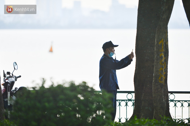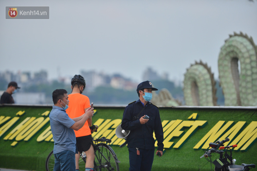 Dù lực lượng chức năng đã dựng hàng rào chắn và hạn chế người dân tụ tập ở hồ Tây nhưng một số người dân vẫn bất chấp, phớt lờ quy định để tập thể dục, chụp ảnh. Khi được nhắc nhở, người dân lại đi từ bên trong ra bên ngoài tụ tập nói chuyện.
