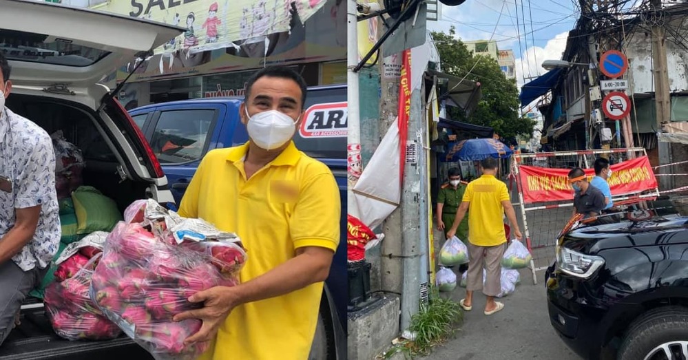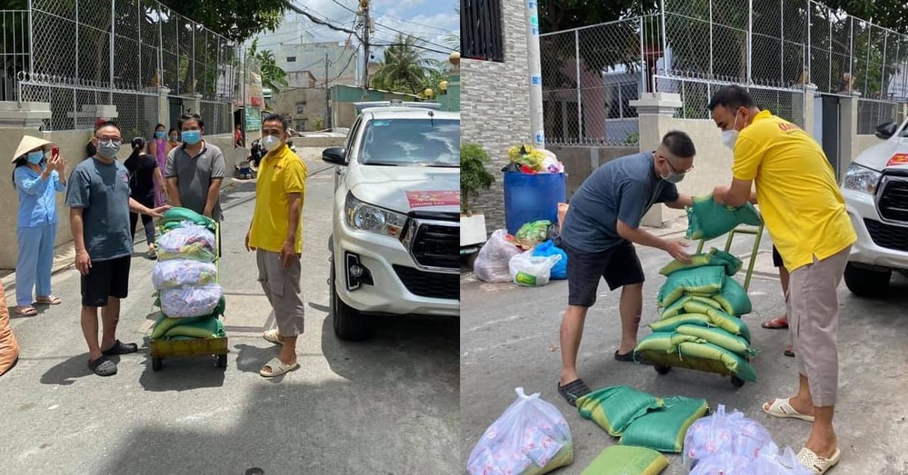Bên cạnh chung tay về mặt vật chất, nam MC còn hăng hái mang các nhu yếu phẩm mạnh thường quân hỗ trợ đến từng khu vực bị phong tỏa.