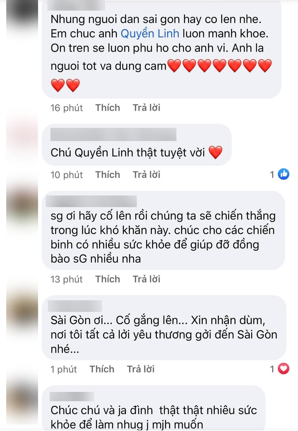 Xông xáo hỗ trợ người dân, Quyền Linh không tự nhận công lao về phía mình mà gửi lời cảm ơn đến tình nguyện viên, gọi họ là những chiến binh dũng cảm. Bên cạnh đó, nam MC cũng cổ vũ tinh thần mọi người cùng nhau chung sức chống dịch.