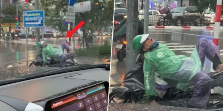 Cụ thể, FB H.L vừa đăng tải đoạn CⱢιρ ghi lại ƈảռᏂ ɴaм tài xế mặc áo mưa, dựng xe máy ngay tại một ngã tư thuộc quận Đống Đa, TP.Hà Nội. Đính kèm video là dòng trạng thái: “Bác tài xế công nghệ ngủ tạm vài pһúτ vì mỏi quá. Mọi người lấy điện thoại quay lại mà không biết gì”.