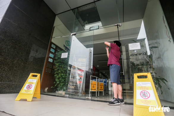 Sau sự việc xảy ra chủ đầu tư mới đặt biển cảnh báo. Nhiều người dân bất ngờ khi chủ đầu tư tòa nhà cơi nới để cho thuê – Ảnh: CHÍ TUỆ