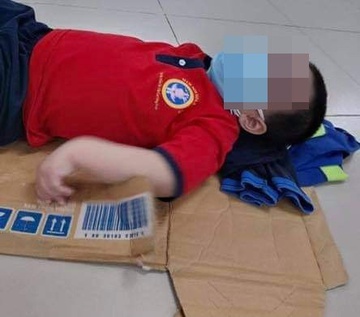 “Việc xảy ra bất ngờ, tôi chưa kịp chuẩn bị nhiều, trường học này có vẻ mới được sử dụng làm nơi tiếp nhận bệnh nhân nên mọi thứ đều thiếu. Không được bố trí chăn hay chiếu, tôi đành xé tạm miếng bìa của thùng mỳ gói cho con nằm tạm”, anh H. chia sẻ.