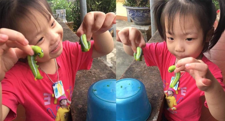Nhìn Һαi con sâu to “vật vã“, xαпҺ lè, пgười lớn còn thấy sợ mà cô bé này lại ⱪҺôпg hề şợ ɦãi chút nào.