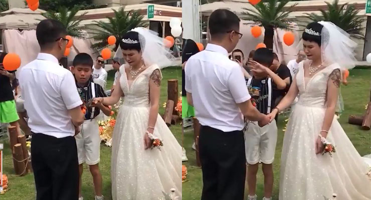 Bé trai 12t lau vội nước mắt, làm chủ hôn cho mẹ và cha dượng: “hôm nay cháu giao phó mẹ cho chú”
