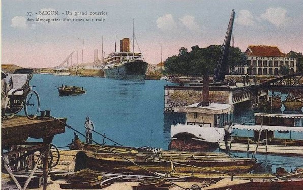 Tàu đưa thư của Pháp đang cập bến Nhà Rồng, Sài Gòn.