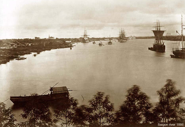 Quang cảnh sông Sài Gòn và khu trung tâm Sài Gòn (bên trái) năm 1886.