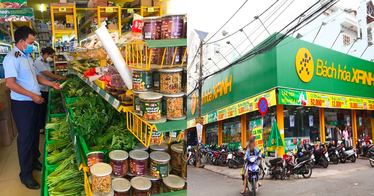 Quản lí thị trường tiến hành kiểm tra Bách Hóa Xanh sau khi có phản ánh từ người tiêu dùng. (Ảnh: Tiêu Dùng)