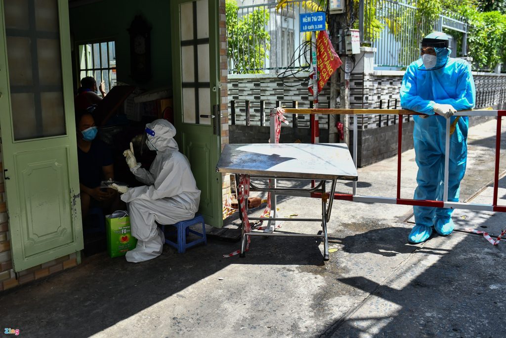 Lực lượng y tế TP.HCM chăm sóc, điều trị F0 tại nhà. Ảnh: Phạm Ngôn.