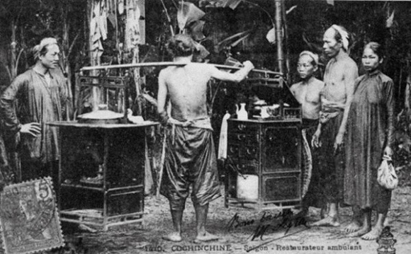 Một gánh phở rong. Người bán hàng gánh cả bếp lò, nồi nước sôi đi khắp nơi.