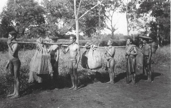 Trái với hình ảnh hiện đại bên trên, một đoàn vận chuyển thư và bưu chính bằng chân.