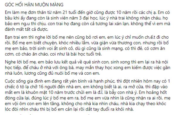 Có lần mình bật mấy clip Kpop để xem cho đỡ buồn thì có bà hàng xóm sang chơi tầm nửa tiếng rồi về, đến chiều thì mình ra mua ít đồ lúc về thì thấy bà ta nói gì với bố chồng: “Anh chị chiều con dâu quá rồi đấy, sau này nó lại láo. Có phải tự dưng các cụ bảo dạy con từ thuở còn thơ, dạy vợ từ thuở bơ vơ mới về đâu? Cần cứng rắn hơn mà uốn nắn nó chứ!