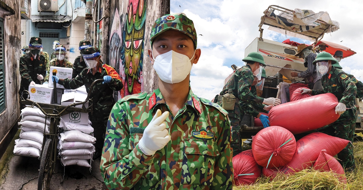 Bộ đội đi chợ giúp bà con ở TP.HCM.Trước đó, số lượng chiến sĩ công an tham gia vào “cuộc chiến” chống dịch cũng được quan tâm. Dân Trí dẫn lời từ Trung tướng Tô Ân Xô cho biết, từ đầu mùa dịch có khoảng 150.000 cán bộ công an hỗ trợ công tác phòng chống dịch, bao gồm các hoạt động như đảm bảo an ninh trật tự tại các chốt kiểm soát, khu cách ly phòng chống dịch. Số liệu này chưa bao gồm gần 2.000 cán bộ y tế công an tham gia vận hành các bệnh viện dã chiến điều trị Covid-19.
