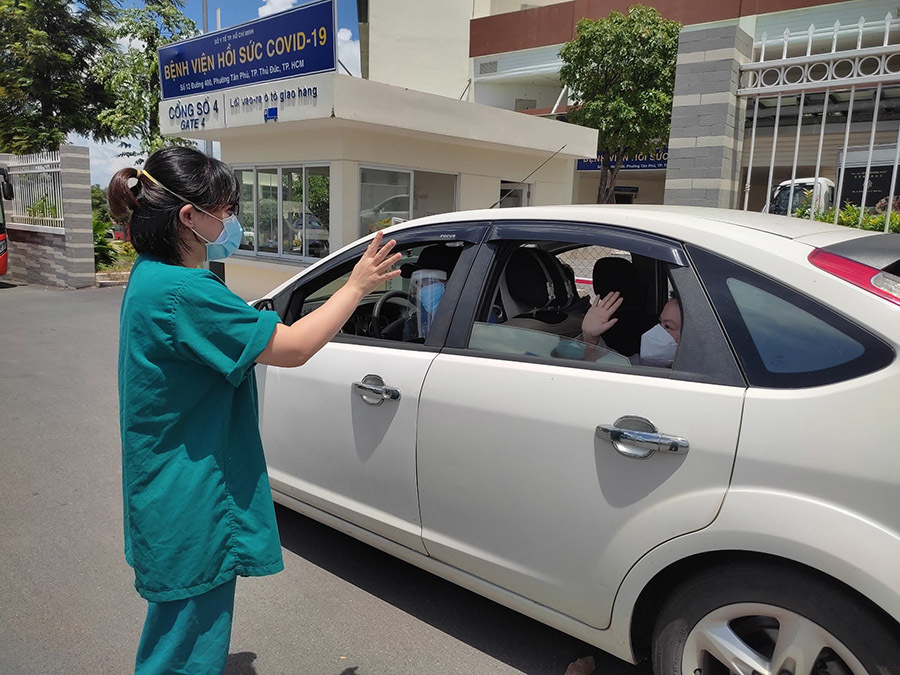 Nhân viên y tế vui mừng tiễn bệnh nhân Covid-19 khỏi bệnh về nhà. (Ảnh: Vietnamnet)