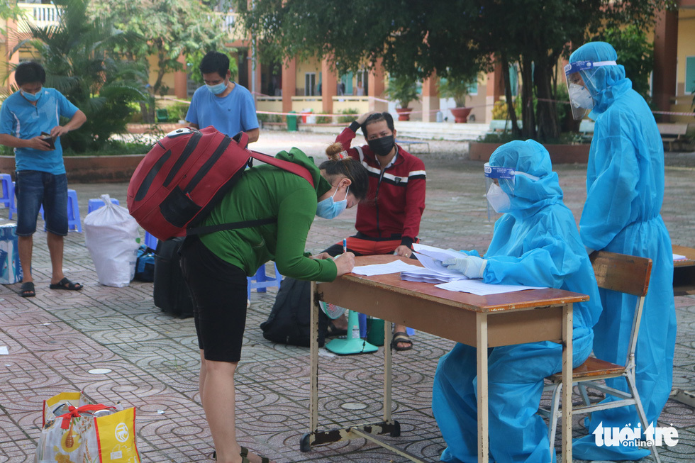 Chuyến xe chở F0 đến “bệnh viện dã chiến tuyến huyện” điều trị. (Ảnh: Tuổi Trẻ)