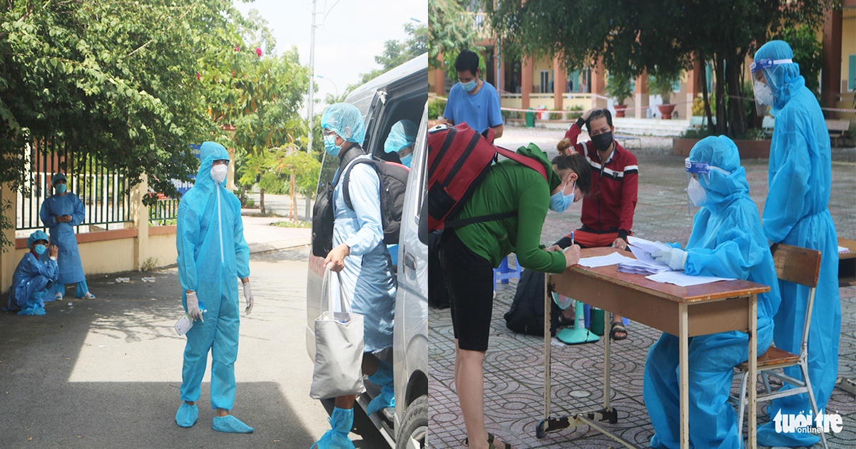 Chuyến xe chở F0 đến “bệnh viện dã chiến tuyến huyện” điều trị. (Ảnh: Tuổi Trẻ)
