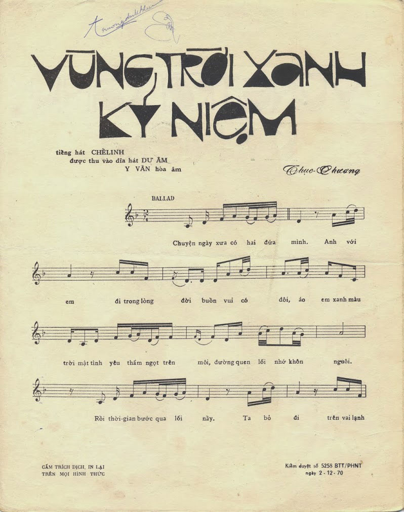 Ca khúc “Vùng trời xanh kỉ niệm” được nhiều người cho rằng đồng tác giả với ca khúc “Con đường mang tên em”